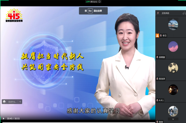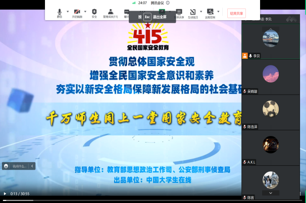 为增强学生安全教育意识,JAV免费 于4月12日晚20点组织学生一同线上观看国家安全教育宣传视频。各年级以不同形式分小组积极响应活动,在宿舍集体观看安全教育视频。视频为学生介绍全民国家安全教育日的来历、意义和国家安全知识,让国家安全观念入脑入心。观看过后,许多同学表示受益匪浅,深有感悟。