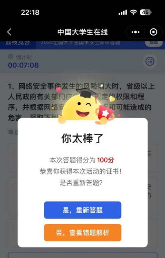 学院积极鼓励同学们通过线上答题方式进一步了解国家安全相关的知识,涵盖了政治、军事、经济、信息、社会、生态、文化和外交等多个方面。通过在线答题,不仅增加了教育学习活动的趣味性、主动性,同时,还使学生更加深入地了解安全知识,掌握安全技能,增强自我保护能力,为学生的健康安全提供有力保障。