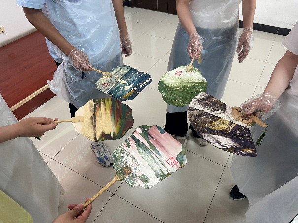 最后,毕业生党员在陈思的指导下制作毕业礼物——漆扇。漆扇作为我国传统手工艺品,具有深厚的文化底蕴和历史传承。制作过程中,党员们认真听取老师的讲解,将五彩斑斓的染料滴入桶,随着漆扇缓缓浸入,扇子上也染上了绚丽的色彩。每一把漆扇都是一件艺术品,展现了中华传统工艺的独特魅力,满载着学院、老师、同学的爱,祝愿每一位毕业生顺利奔赴人生的下一段旅程。