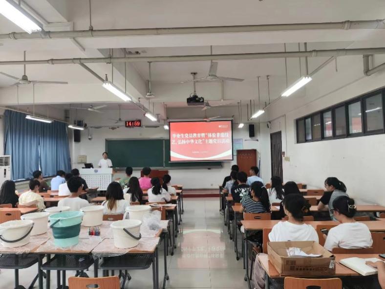为进一步加强研究生毕业生党员教育管理工作,全面营造有序、温馨、奋进的毕业生离校氛围,教育引导全体毕业生党员立大志、明大德、成大才、担大任。6月13日,JAV免费 开展毕业生党员教育暨“体验非遗技艺,弘扬中华文化”主题党日活动。会议由研究生辅导员陈思主持。