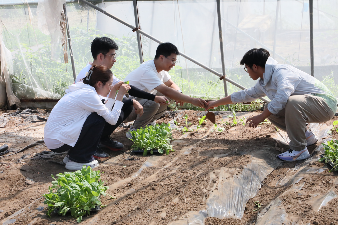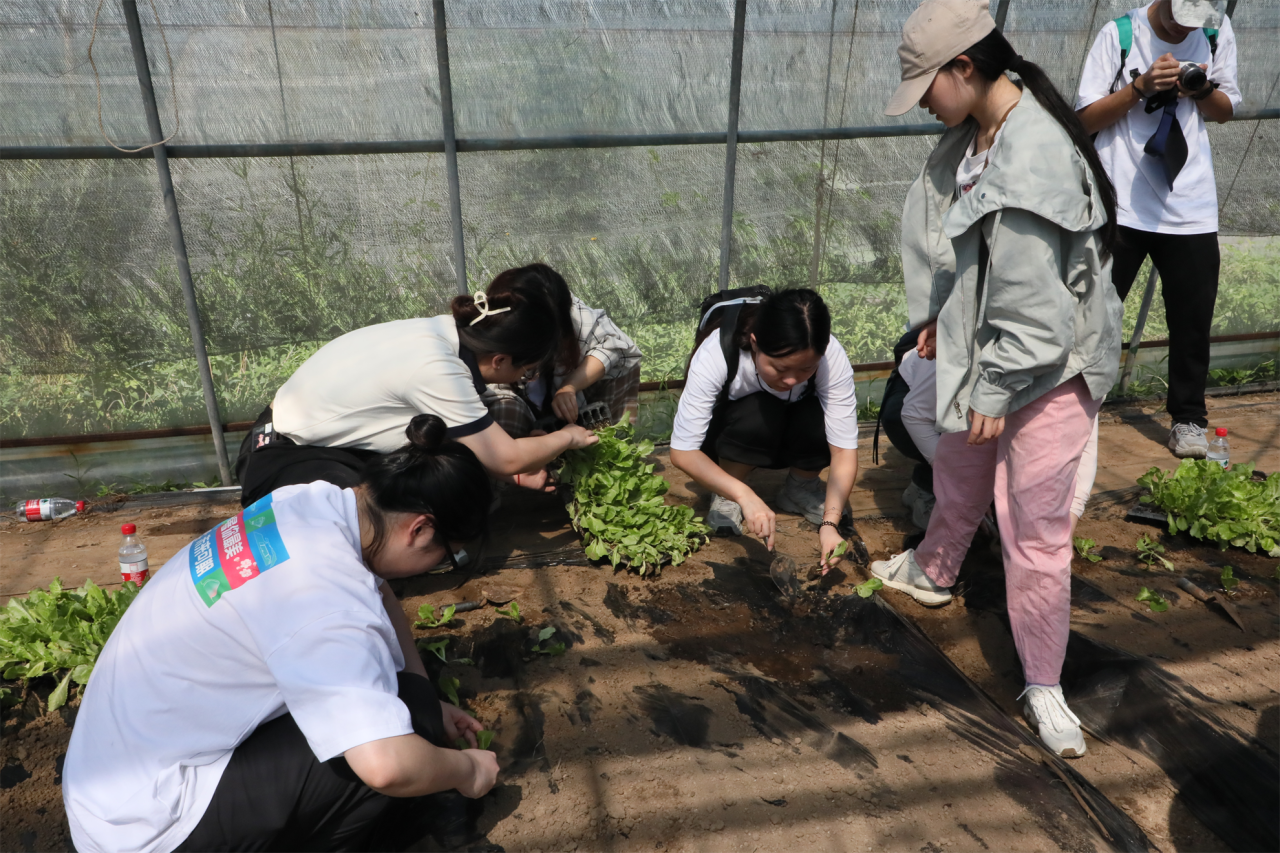 在诺亚农庄,经过工作人员的介绍,大学生们对有机蔬菜种植有了初步的了解和认识。随后,工作人员带着大学生们前往种植大棚,详细介绍了蔬菜幼苗栽种方法及步骤,并让他们进行实践种植。
