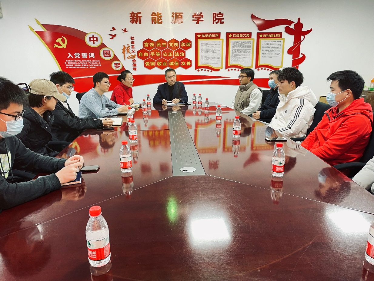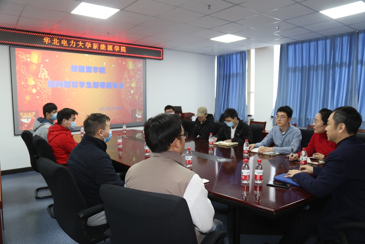 座谈慰问过程中,李美成与学生亲切交谈,他详细了解学生们留校原因和在校学习生活情况,叮嘱同学们留校期间一定要注意自身安全,牢记学校和实验室管理要求,做好个人防护。提倡在校学生互相帮助,加强集体意识,共同营造“以院为家,以校为荣”的美好氛围。鼓励同学们利用好寒假时间“加油充电”,做好学习规划,用心去发现、去感受,不断充实自我,并将个人发展与学院发展相结合,为国家“双碳”目标的实现贡献新能源学子的力量。
