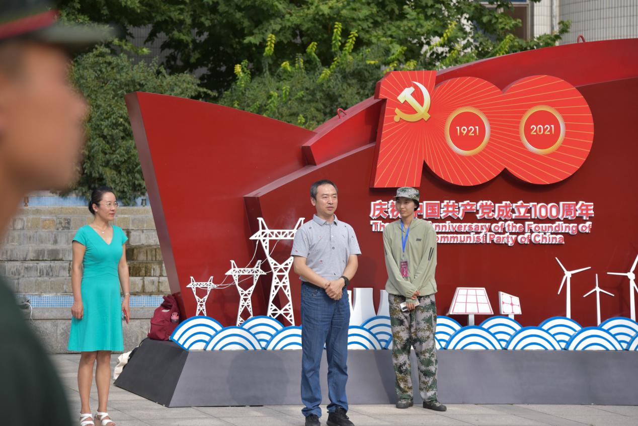 训练场上,学生们正在刻苦训练,大家动作规范整齐,身姿挺拔,展示出新能源学子朝气蓬勃的精神面貌。李美成院长和姜良杰副书记一行人等到训练休息的间歇,来到教官和学生中间进行亲切交谈。
