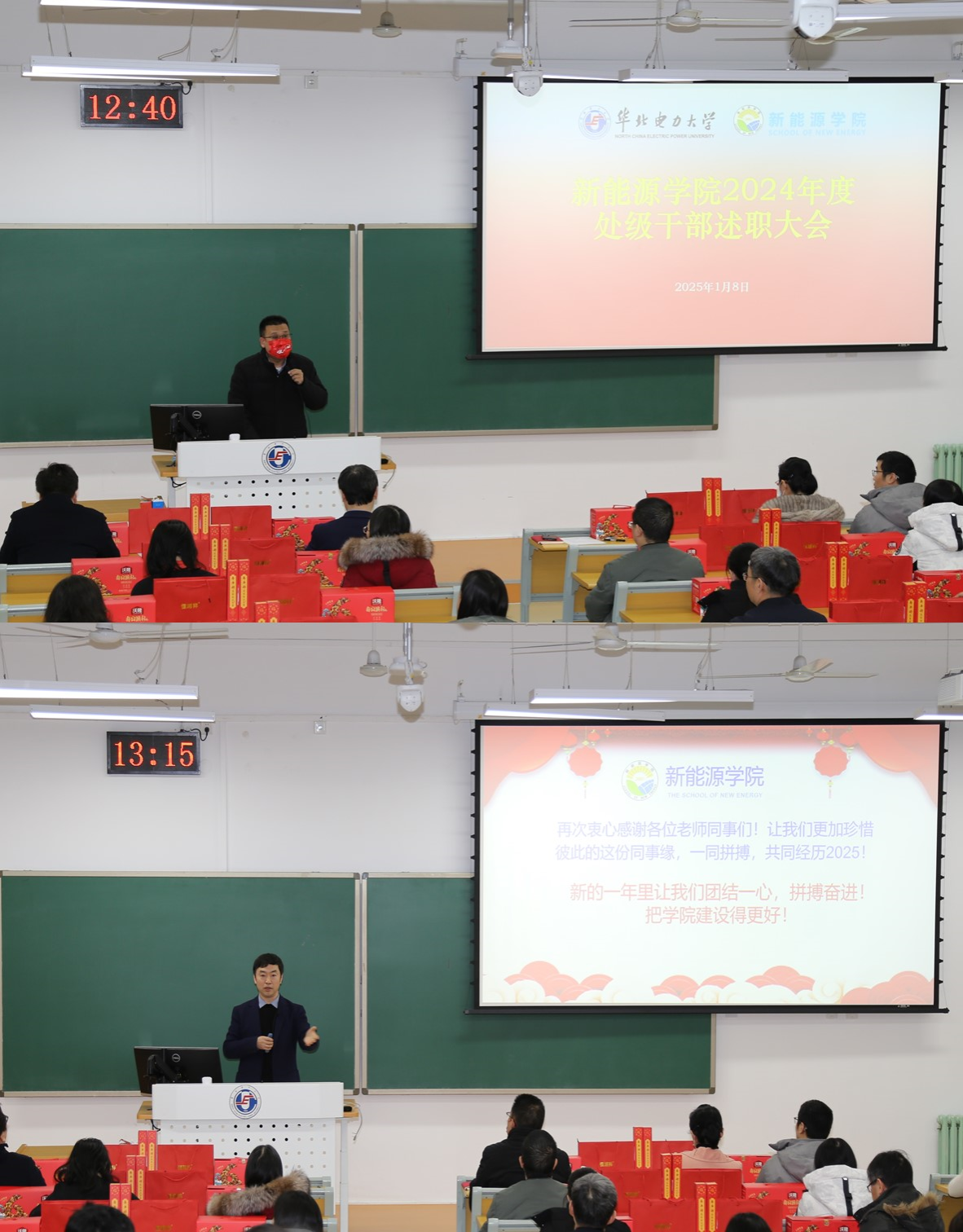 李美成代表学院做2024年度工作汇报。他表示学院秉承着“和谐发展”的理念,始终坚持学院发展总体思路,在“教学科研、师资队伍、人才培养”等方面不断取得代表性成就,学院事业得到了长足发展。同时,李美成对学院2025年工作进行了展望。在新的一年中要充分发挥党建引领龙头作用,加强“一融双高”常态化长效化建设;牢牢把握守正创新重大原则,统筹推进学院事业深化改革;紧紧围绕立德树人根本任务,多措并举打造优秀学风品牌。在“和谐发展”理念基础上,进一步提出“全员参与”的总体规划。将学院整体发展与教师个人发展统揽互促,团结一心拼搏奋进,为高水平研究型大学建设贡献更多的新能源力量。