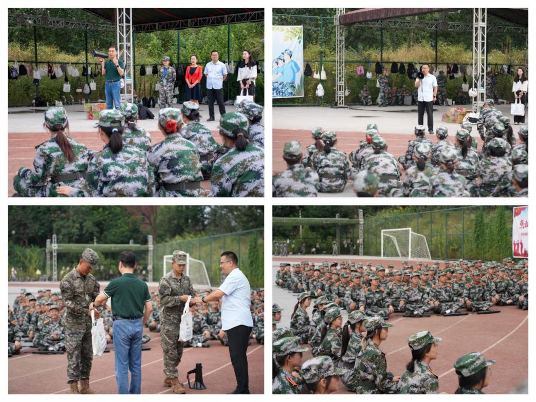 为传递学院对军训新生的深切关怀,学院领导为军训新生发放慰问品,希望同学们能继续保持激昂的状态,在军训汇报仪式上精彩亮相,充分展现军训成果与青春风采。