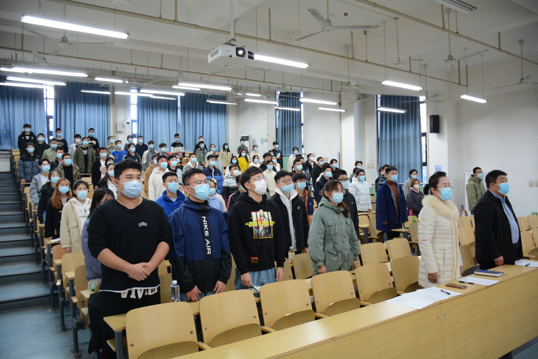 2021年11月10日中午,JAV免费 第52期入党积极分子培训班开班仪式在主B101召开,JAV免费 党委书记王集令、党委副书记姜良杰出席本次开班仪式。仪式伊始,全体人员起立,奏唱国歌。