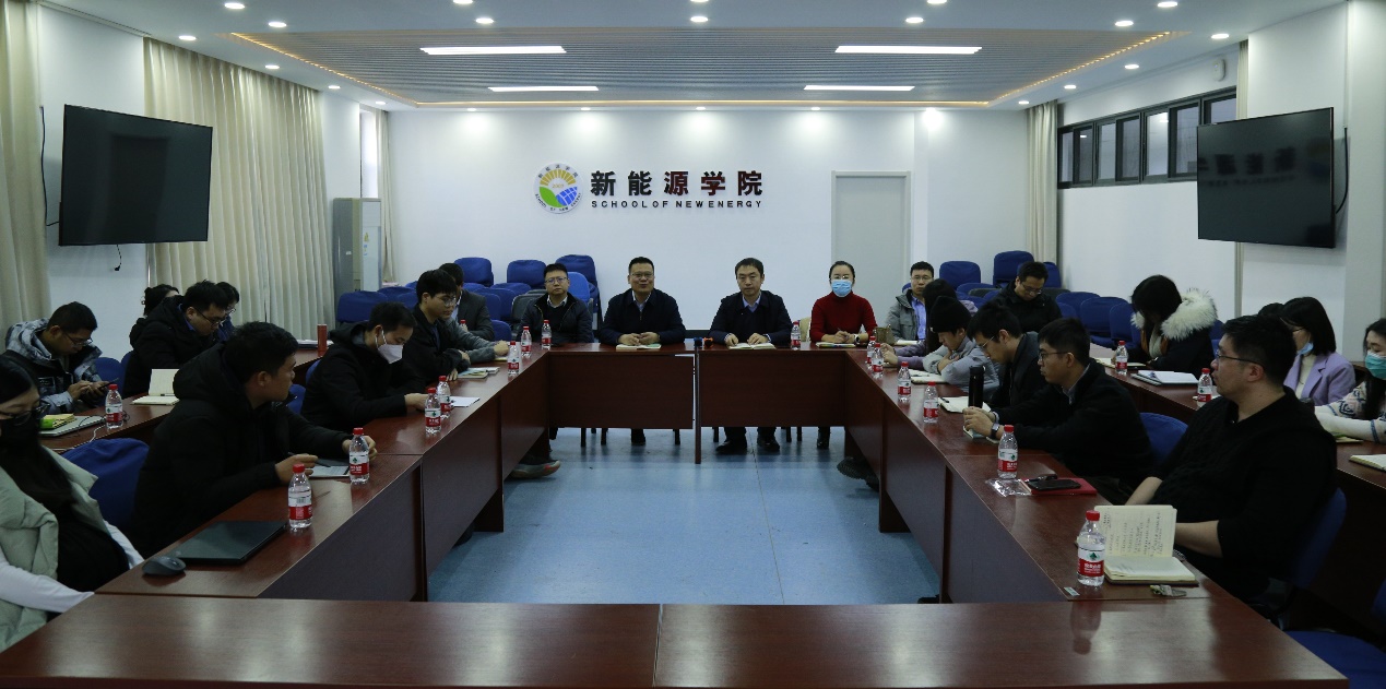 会议共分为上下两半程,上半程为青年教师座谈会,下半程为2024年度国家自然科学基金项目申请动员会。上半程会议由宫凯主持。宫凯首先向近三年入职的青年教师总结介绍了2023年学院的发展成就,提出了未来学院建设的新目标和奋进方向,并介绍了学院领导班子成员的周一的例会制度,并现场召开本周的领导班子例会例会,会上,由学院全体领导分别就各自分管工作进行总结并提出下一步的工作计划。