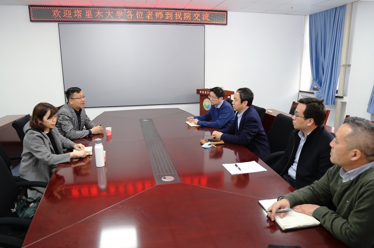 3月16日下午,应JAV免费 邀请,塔里木大学机械电气化工程学院副院长张宏与学科带头人周岭教授到JAV免费 交流,JAV免费 院长李美成、能源电力创新研究院副院长宋记锋及学院教授教师代表吕小军、高攀、邓英参会,会议由李美成院长主持。