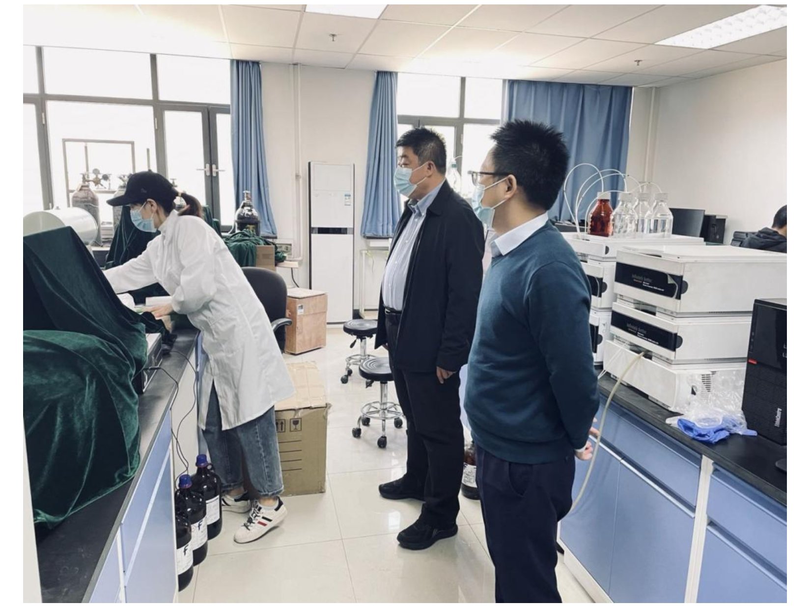 在实验室防疫方面,学院领导定期对实验室安全和疫情防控进行例行检查,并对实验室日常疫情防控和安全管理工作提出具体要求与针对性的指导意见,强调实验室负责老师压实责任,面对实验室安全检查不可懈怠,同时在实验室日常管理中积极主动关注学生思想动态,严格要求学生佩戴口罩,保持社交距离。