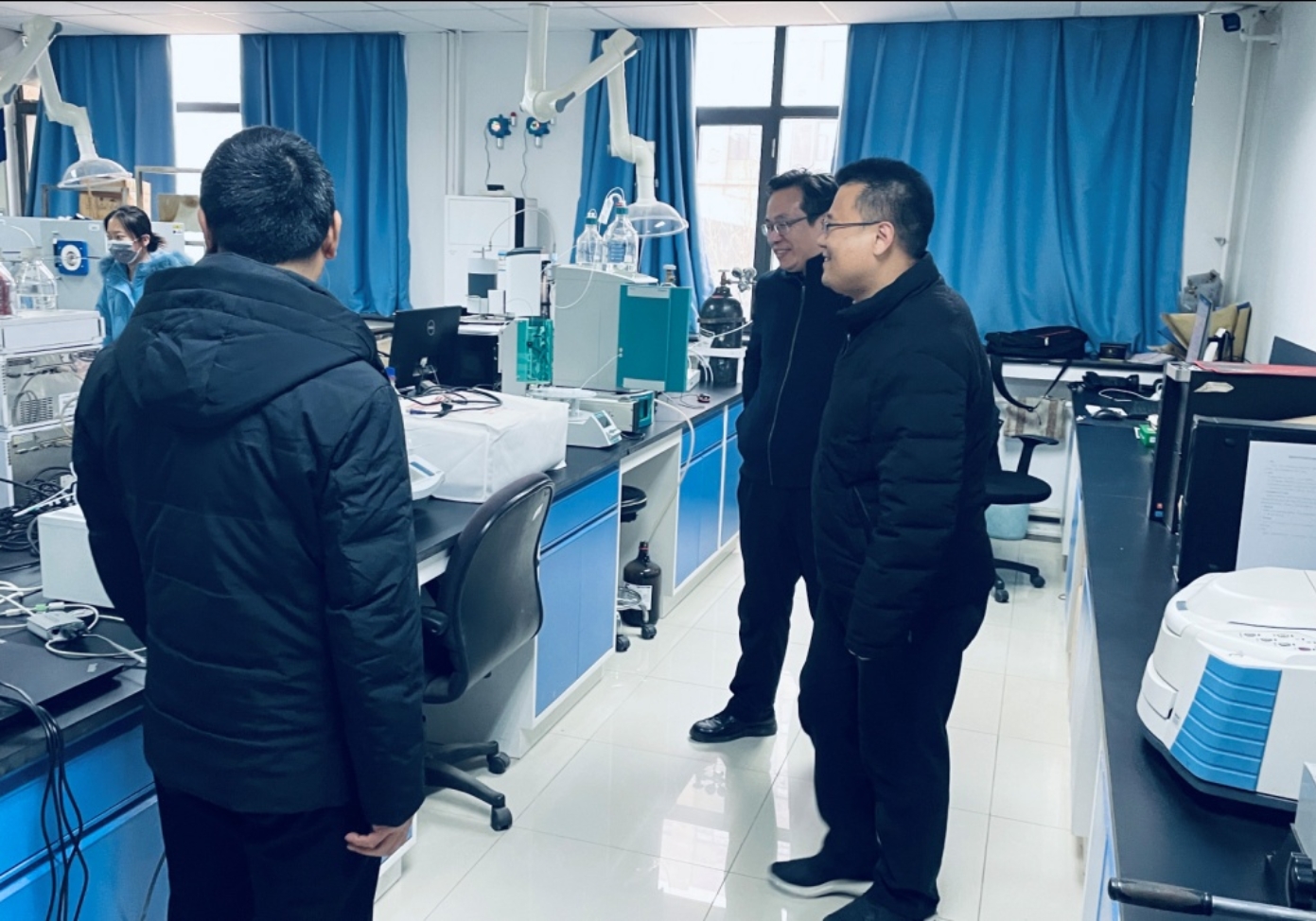 为积极响应学校《关于加强2024年春节寒假期间实验室安全工作的通知》及《关于做好2024年春节寒假期间安全工作的通知》,保障春节寒假期间学院安全稳定,确保危险化学品储存场所通风良好,各种安全设施、消防器材正常使用。 1月19日下午,JAV免费 党委书记宫凯带队,对学院仍在开展工作的实验室进行安全检查,旨在做好实验室隐患排查,提高风险防范能力,确保寒假期间学院实验室安全及消防安全。