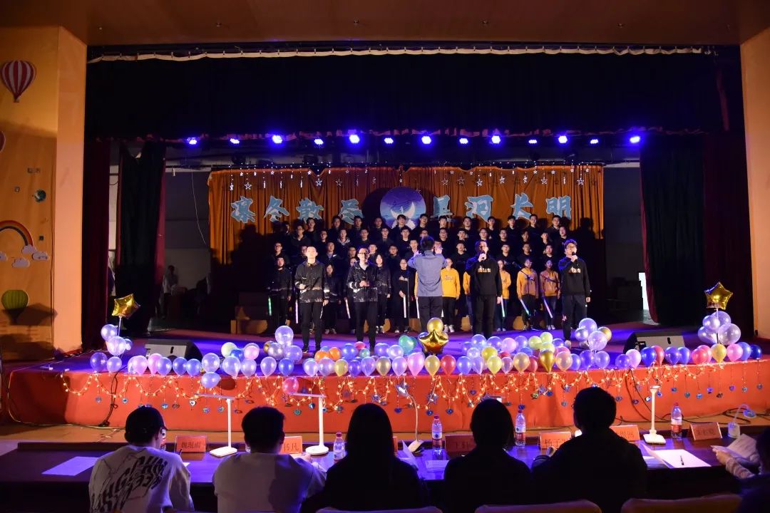 热场结束,悠扬终起。接下来是新能源2006班和水利2002班的《星辰大海》。你的眼里有宝藏,是整个日月星辰;心中有信仰,是一片汪汪大海。星辰大海,我们共同扬帆远航游星河,一腔热血踏征程!