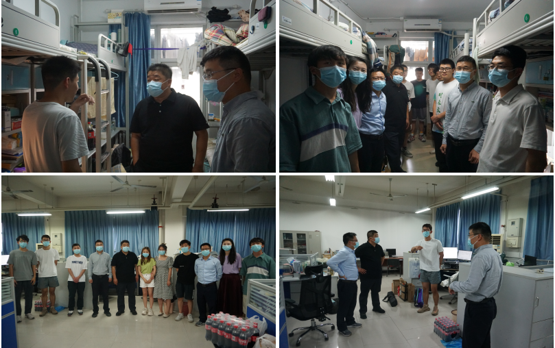 学院领导和全体驻校辅导员到学生宿舍以及实验室慰问未离校学生,送去端午祝福,了解学生近期的生活学习以及科研情况。学院领导要求在校学生严格遵守学校的各项防疫规定和实验室安全管理规定,做到抗击疫情不放松,安全检查不松懈。学院领导希望同学们要珍惜校园稳定安全的环境,共同努力守住校园这片净土并表示学院永远都是大家最坚强的后盾,帮助大家解决学习生活上的问题。