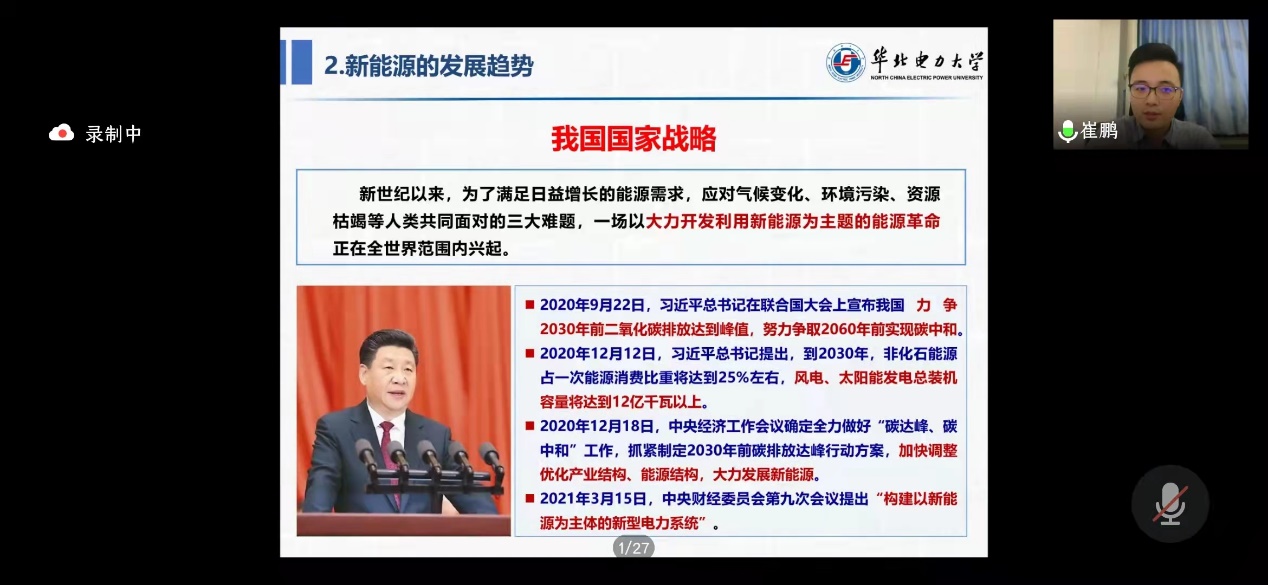 崔鹏从自身经历出发,以自身丰富的求学经验以及多年的科研和工作经历为例,向大家分享关于学习、科研、就业的经验和感悟,并向同学们分享了他对新能源专业现状的看法。鼓励同学们坚定学习新能源专业的信心,坚信新能源未来发展前景,树立长远学习、勇于贡献的目标。