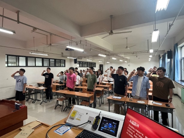为教育引导全体毕业生党员明党纪、守底线、忆初心、强党性,夯实党性教育之基,研新能源2144班党支部党员代表柳志晗同志带领全体毕业生党员重温入党誓词。铿锵有力的誓言展现了学生党员对党的忠诚和坚定为共产主义事业奋斗终身的理想信念,党员们决心在未来的学习和工作中,继续发扬党的优良传统,践行党的宗旨,充分发挥党员先锋模范作用。