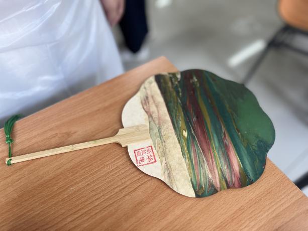 最后,毕业生党员在陈思的指导下制作毕业礼物——漆扇。漆扇作为我国传统手工艺品,具有深厚的文化底蕴和历史传承。制作过程中,党员们认真听取老师的讲解,将五彩斑斓的染料滴入桶,随着漆扇缓缓浸入,扇子上也染上了绚丽的色彩。每一把漆扇都是一件艺术品,展现了中华传统工艺的独特魅力,满载着学院、老师、同学的爱,祝愿每一位毕业生顺利奔赴人生的下一段旅程。