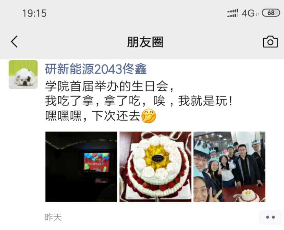 研究生会组织开展了“导员陪你过生日”第一期活动,为4月份过生日的同学集体庆祝生日。活动由研究生会副主席王楠主持。